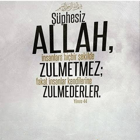 Allah insanlara asla zulmetmez, onların dünyada daha adil,daha huzurlu yaşamaları ve cennet nimetlerine ulaşması için uyarılarda bulunur, tövbelerini çokça kabul eder.